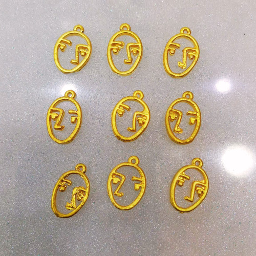 Oval Çerçeveli Soyut Yüz Figürlü Altın Kaplama Takı Sallantı Aparatı (1 Adet)